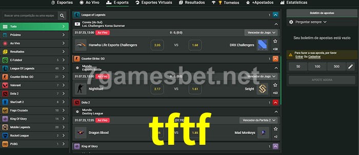 O tftf oferece uma grande seleção de opções de apostas em e-sports com probabilidades competitivas